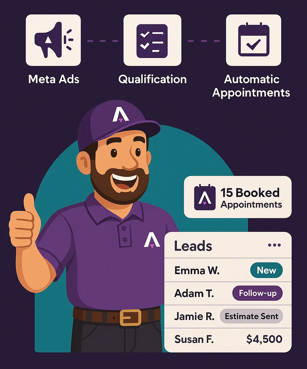 Using Meta Ads, smart lead qualification, and automated appointment booking, we build pipelines that consistently turn homeowners into paying clients